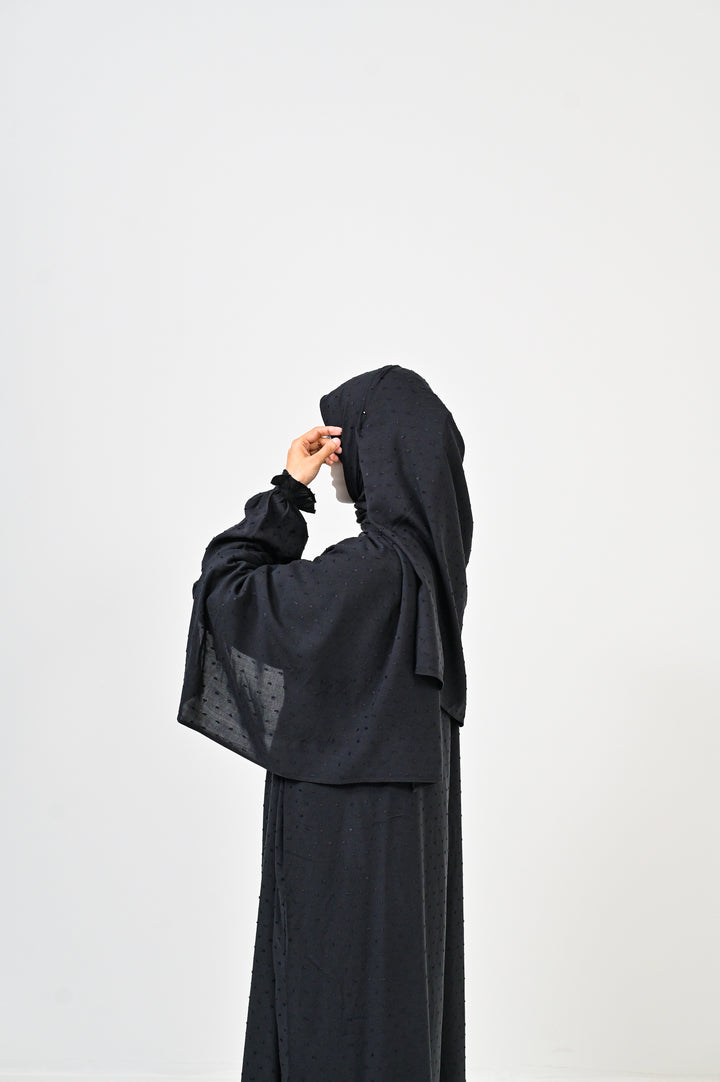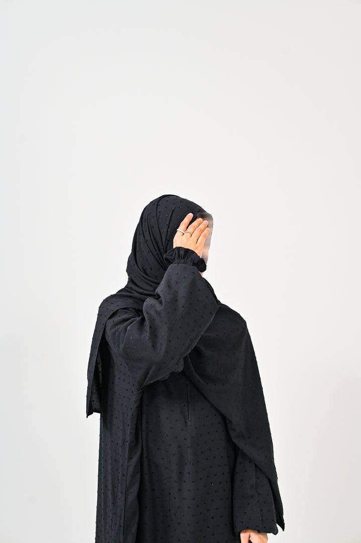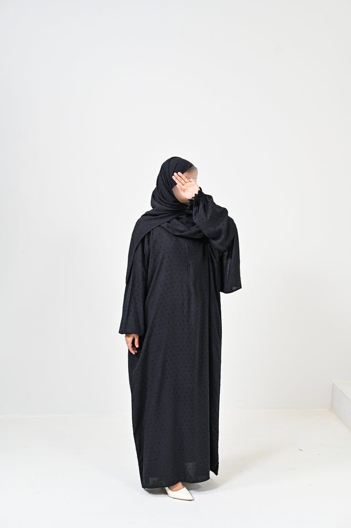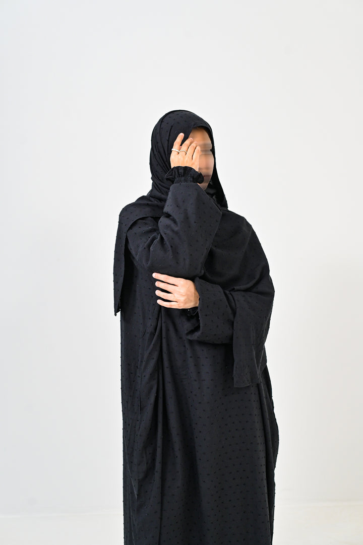 Style: Our free-size, Emirati-cut baggy Abaya-dress, featuring an attached hijab for instant wrapping around the head and effortless tucking under the chin, achieving modesty and grace has never been easier.