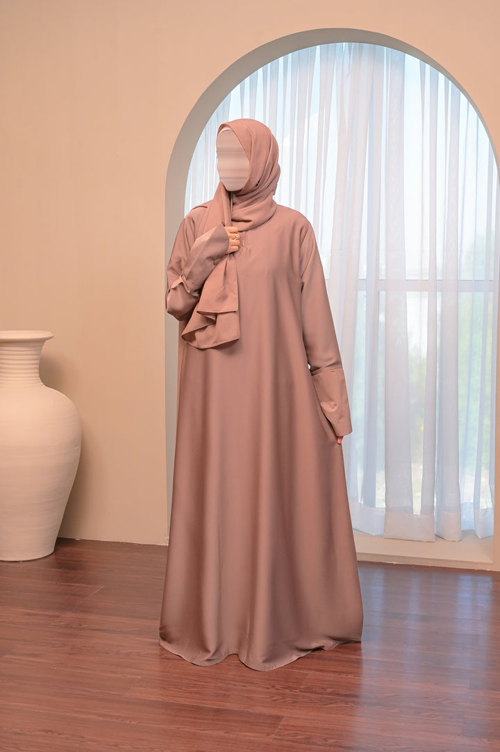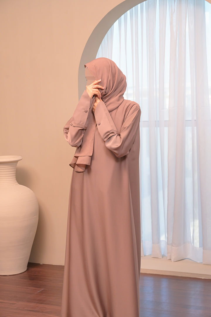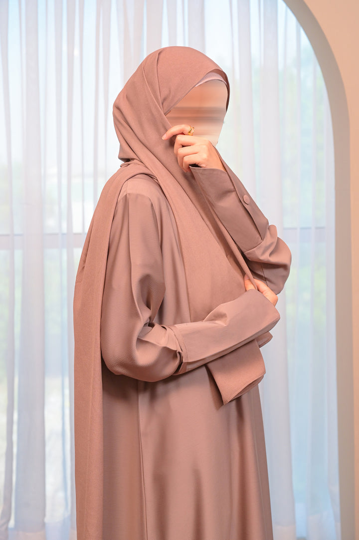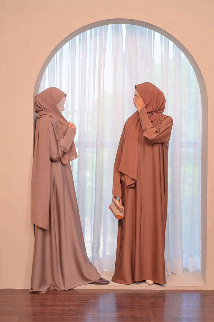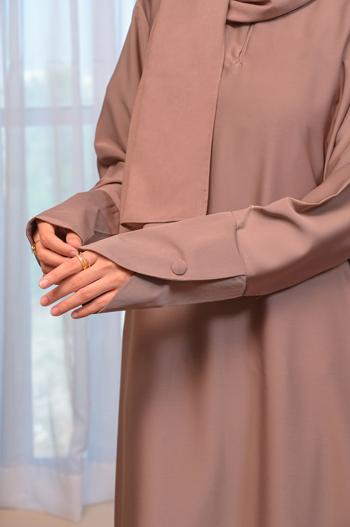 The effortless Celine Abaya draws its character from a sleek, long straight-fit cuff and a measured A-line flare that creates a clean, elongating silhouette. Designed for everyday ease and understated elegance.