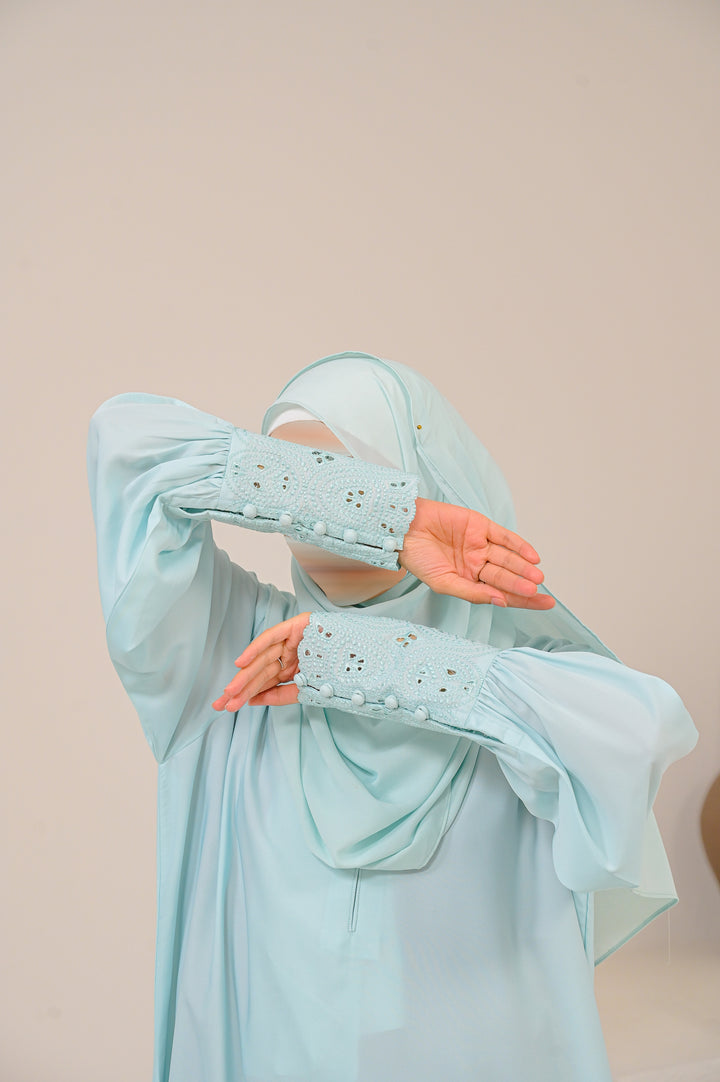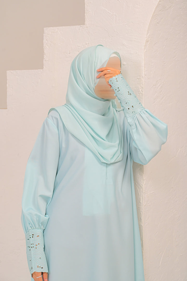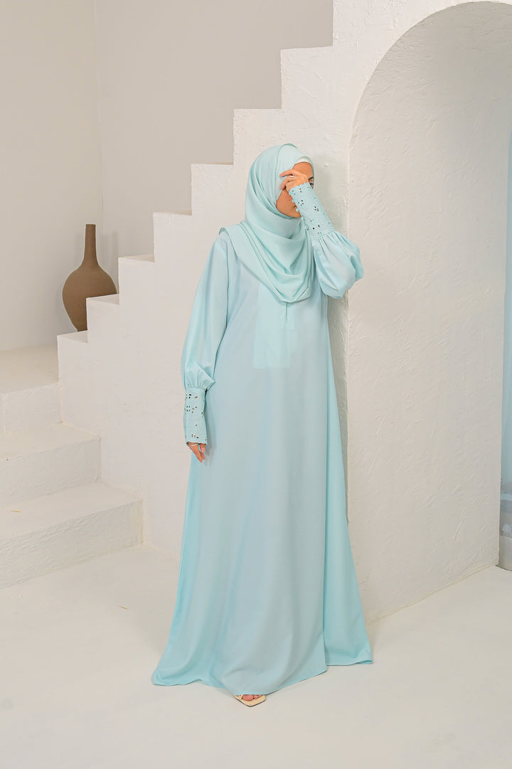 Design Details: A contemporary, sleek abaya featuring embroidered cuffs and a straight, streamlined silhouette. Designed for effortless elegance, its clean lines and minimalistic form create a modern profile, perfect for everyday sophistication or elevated smart-casual wear. Subtle embroidery adds a refined touch, balancing understated luxury with timeless style.