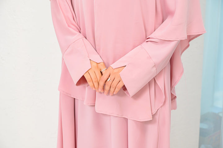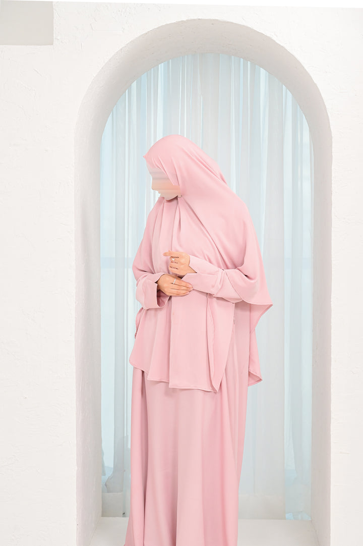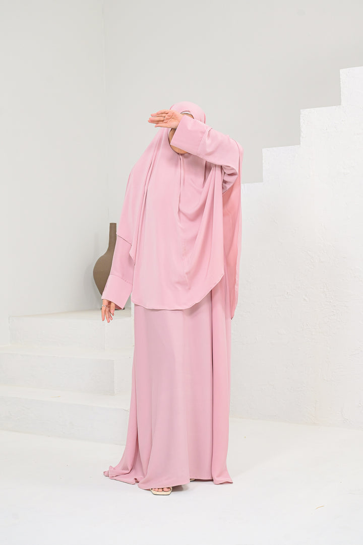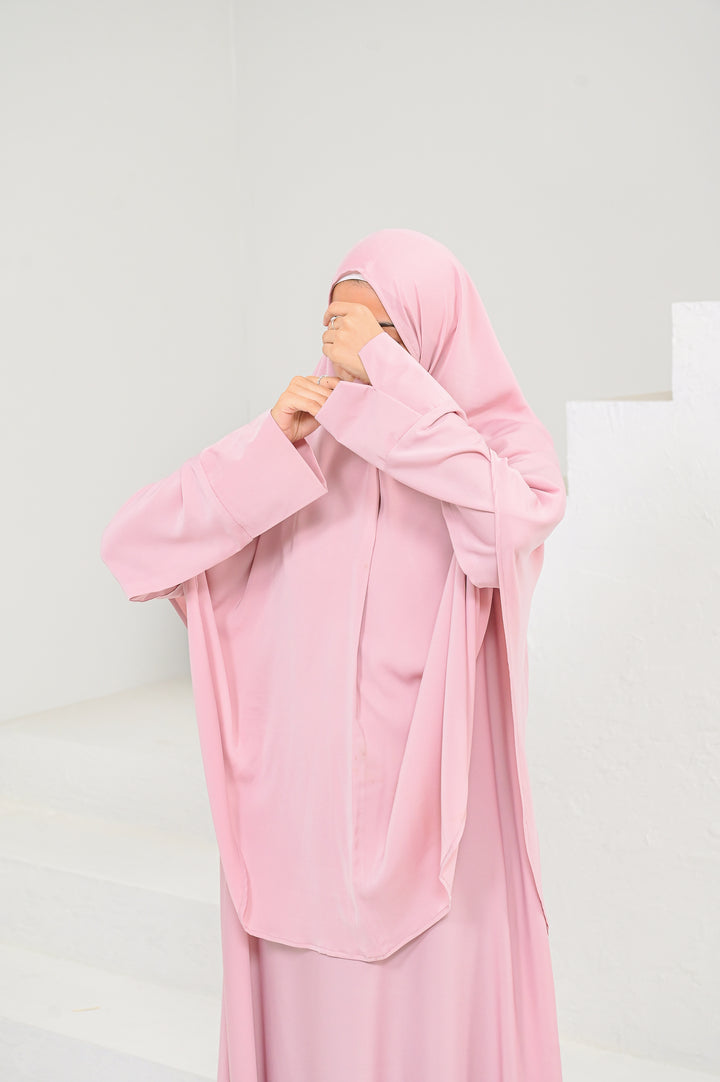 We have crafted the most effortless ihram and taraweeh solution: The complete Abaya and Khimar set.