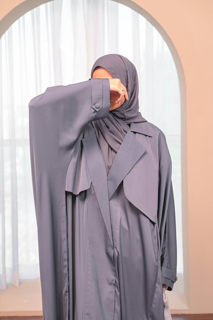 Design Details: We didn’t just design a kaftan. We reimagined what modest wear could be. The Trench Kaftan fuses the sharp lines of a classic trench with the flowing ease of a traditional kaftan, creating a silhouette that moves with purpose and presence. It is designed to elevate presence, allowing the wearer to move with confidence and grace. This is a modern take on modest wear: elevated, intentional, and unapologetically elegant.