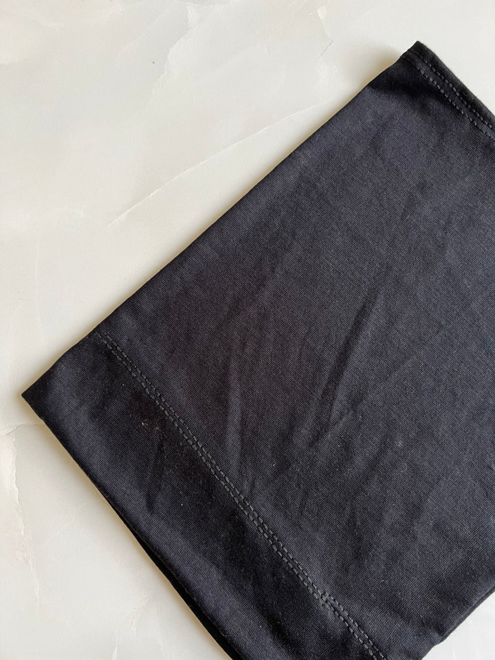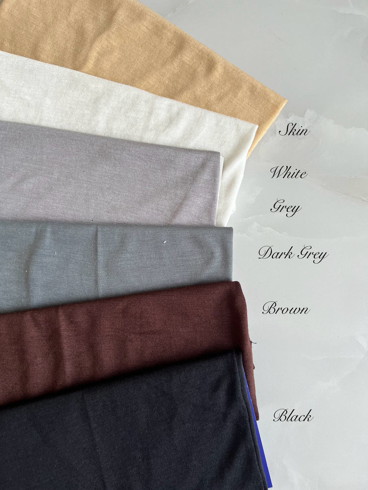 Tube shaped, long hijab under-cap made in cotton jersey fabric. Open from ends. Covers till the back of hair.
